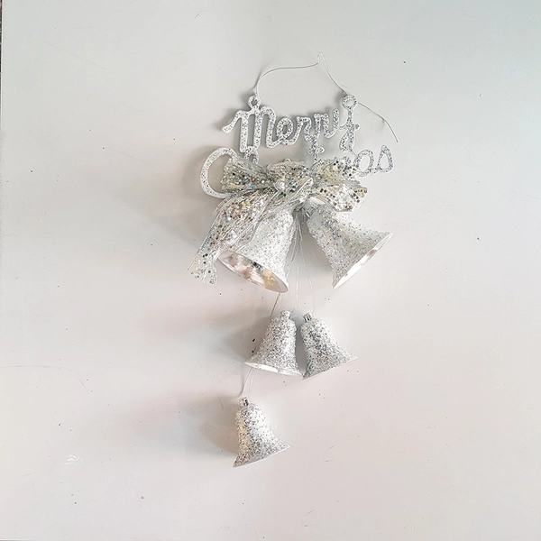 Bảng trang trí kèm dây chuông đôi kim tuyến trang trí noel là đồ trang trí noel giả kim loại gọn, nhẹ thích hợp để treo trang trí trên cây thông, nhà cửa, văn phòng, kho xưởng, quán ăn....