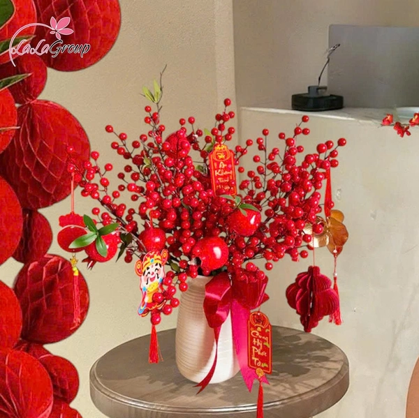 Không chỉ làm đẹp cho ngôi nhà, Bình Hoa Đào Đông Kèm Lựu Đỏ Tài Lộc còn mang thông điệp chúc một năm an khang, gia đình sum vầy, công việc thuận lợi và tài lộc dồi dào, rất phù hợp để trang trí Tết hoặc làm quà tặng đầu xuân đầy ý nghĩa.