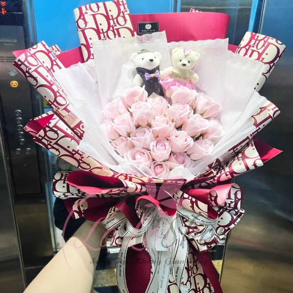 Bó 20 hoa sáp kèm gấu mini I Love you