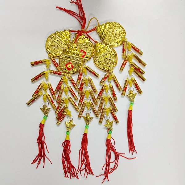 Bộ 5 dây pháo vàng và hũ tiền vàng trang trí tết (2) trang trí cây mai, đào, khung cửa, tường nhà ngày tết mang đến nhiều điều may mắn, đón tài, đón lộc, làm ăn buôn bán thuận lợi, phát đạt cho bản thân và gia đình.