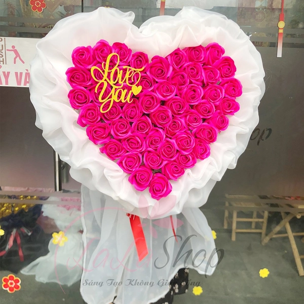 Bó 50 Hoa Sáp Hồng Hình Trái Tim