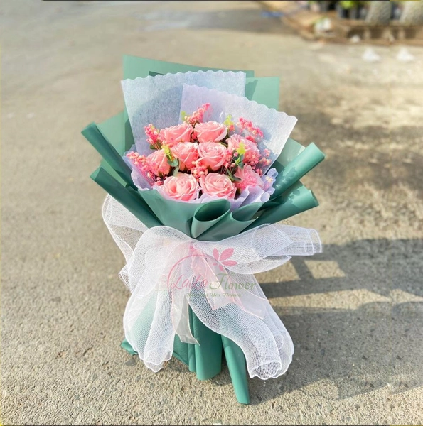 Bó 9 đóa hoa hồng sáp thơm 7 lớp