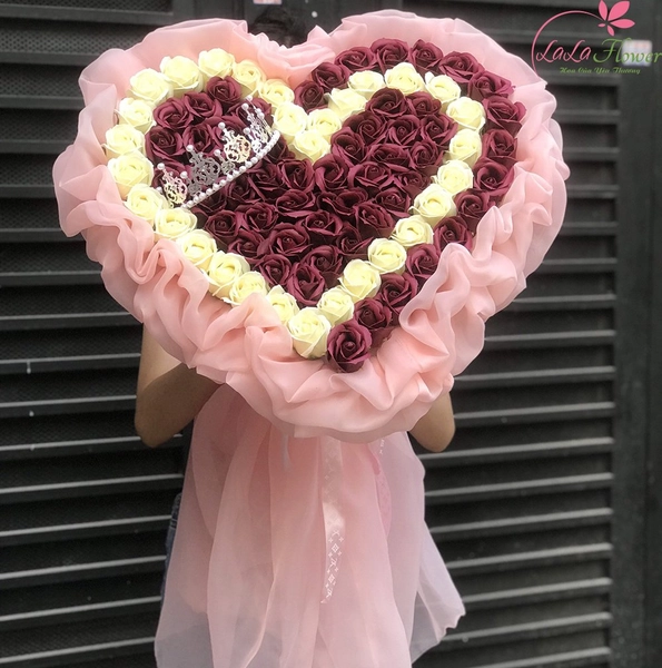 Bó 99 bông hoa hồng sáp thơm trái tim nhị sắc 2
