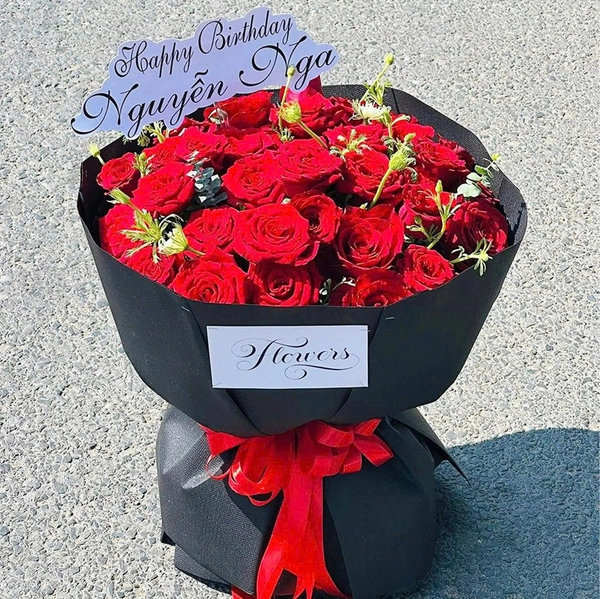 Bó hoa hồng đỏ tươi cao cấp được thiết kế với sự chăm chút trong từng chi tiết, mang lại cảm giác sang trọng và đẳng cấp ngay từ ánh nhìn đầu tiên.