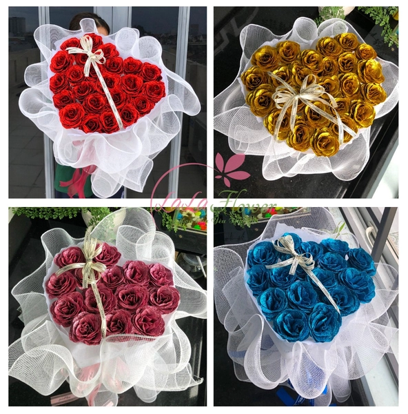 Bó hoa nhũ kim tuyến hình trái tim quà tặng kỷ niệm cho nữ