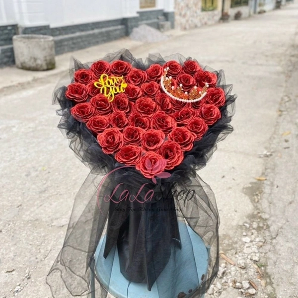 Bó hoa nhũ kim tuyến trái tim cao cấp