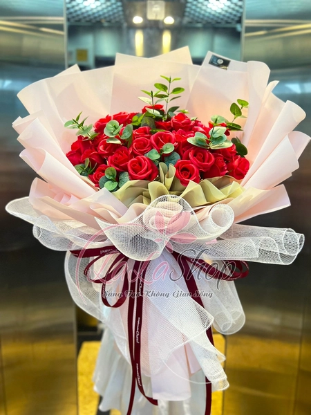 Bó hoa sáp thơm 30 bông 4 lớp sắc đỏ kỷ niệm đáng nhớ mẫu 824