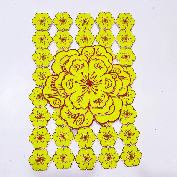 Bộ Mai vàng xốp vạn sự như ý trang trí tết làm bằng xốp dán kim tuyến màu vàng lấp lánh,lung linh và nổi bật