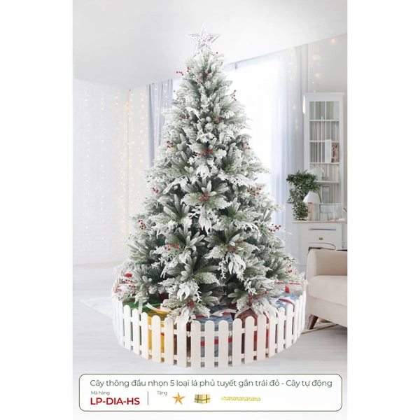 Cây thông được tặng kèm dây kim tuyến, ngôi sao màu ngẫu nhiên, và đế giấy trang trí không bao gồm hộp quà và hàng rào trắng khách hàng có thể lựa chọn thêm các sản phẩm trang trí khác tại shop.