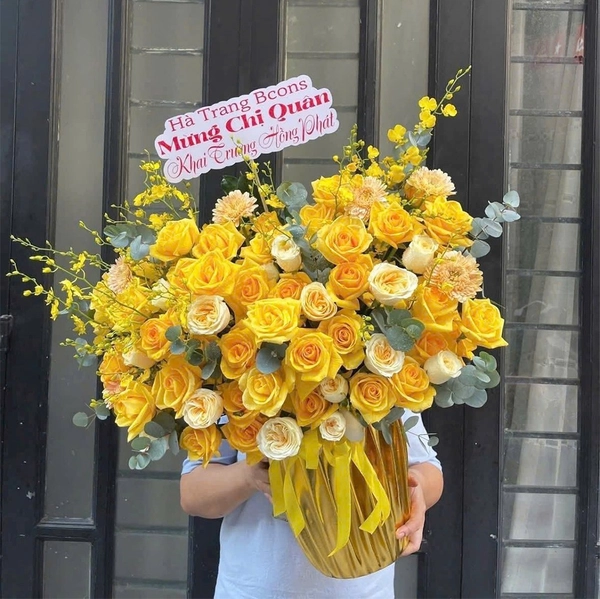 Chậu Hoa Khai Trương Hoa Hồng Vàng Rực Rỡ Sang Trọng