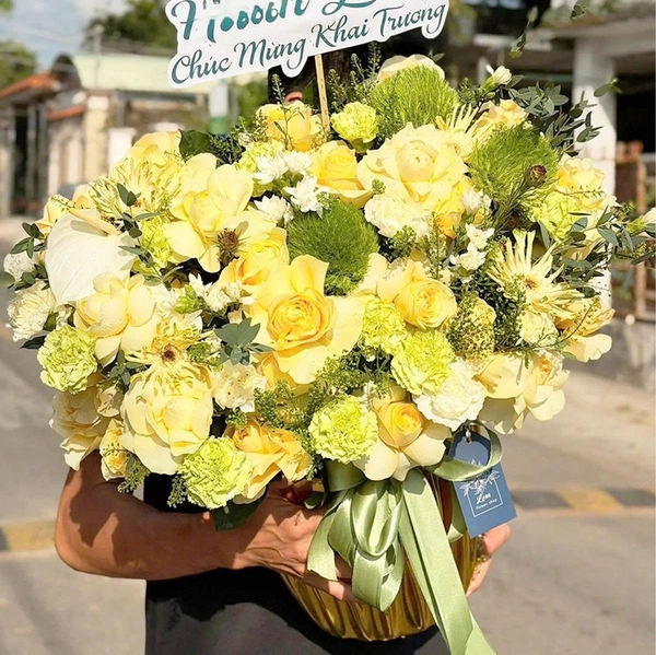 Ngoài mục đích trang trí, chậu hoa tone xanh vàng còn là một lựa chọn quà tặng lịch sự trong nhiều dịp như: