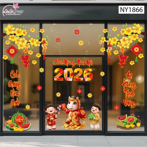 Combo phù hợp cho cửa hàng, siêu thị mini, quán cà phê, văn phòng hoặc không gian gia đình muốn tạo điểm nhấn rộn ràng trong dịp xuân về. Mỗi chi tiết trên decal góp phần mang đến một bức tranh đầu năm tươi sáng, như lời chúc khởi đầu may mắn và sức sống mới cho cả năm 2026.