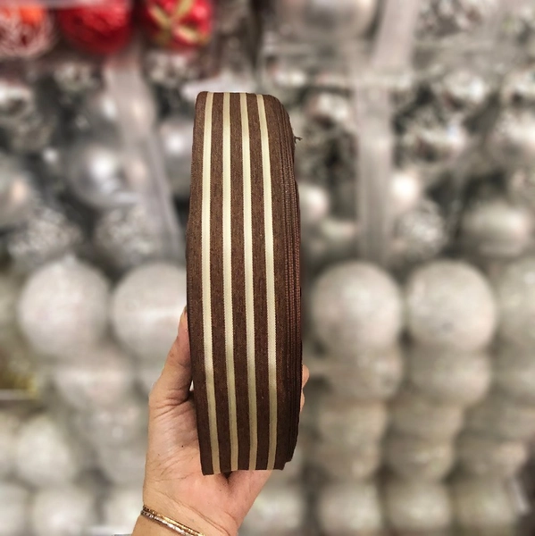 Cuộn ruy băng nâu sọc trắng trang trí noel là một trong những vật dụng không thể thiếu trong trang trí Giáng sinh.