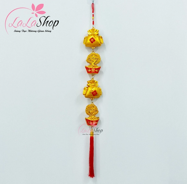 Dây lộc treo đồng tiền thỏi vàng may mắn trang trí tết trang trí cây mai, đào, khung cửa, tường nhà ngày tết mang đến nhiều điều may mắn, đón tài, đón lộc, làm ăn buôn bán thuận lợi, phát đạt cho bản thân và gia đình.