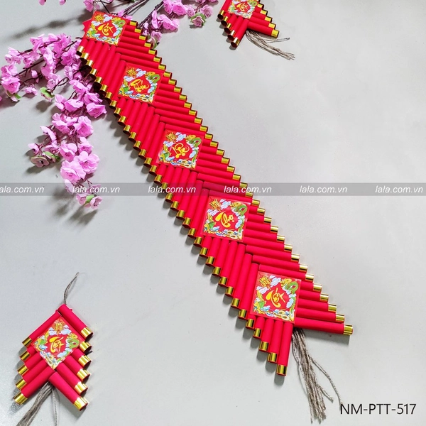 Dây pháo giấy trang trí tết nhà mừng xuân, tạo không khí ấm no ngày tết.