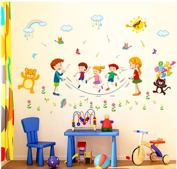 Decal bé chơi nhảy dây với hình ảnh vui mắt tạo không gian sống động, thú vị cho gian phòng của bạn