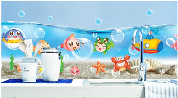 Decal dán tường chân tường đại dương 2 với họa tiết đàn cá bơi lội giúp phòng tắm thêm thú vị, sinh động