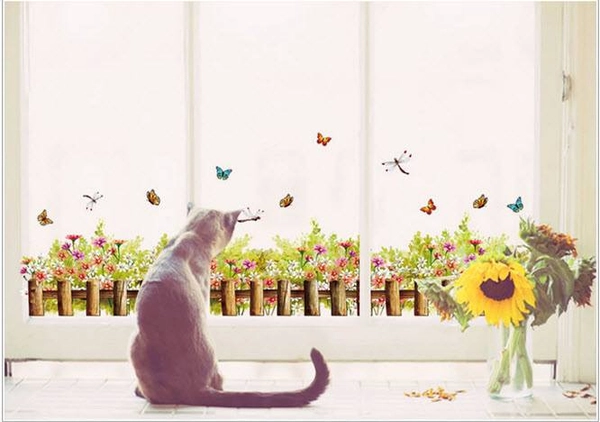 Decal dán tường Chân tường hàng rào nâu 2 với hình ảnh thiên nhiên, hoa cỏ giúp không gian căn nhà bạn thêm phần xinh xắn và đáng yêu.