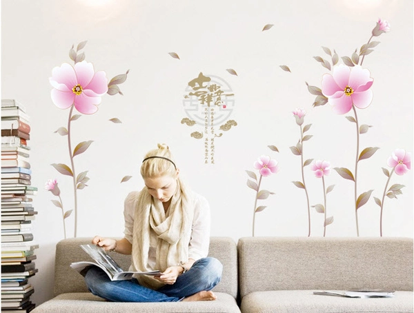Decal hoa 5 cánh hồng nhạt với hình ảnh thiên nhiên, hoa cỏ giúp không gian căn nhà bạn thêm phần xinh xắn và đáng yêu.