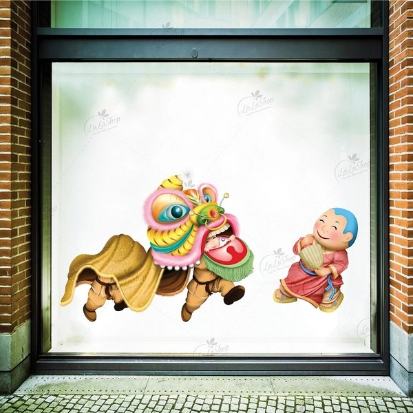 Decal lân địa múa ngày tết mới nhất với cành đào hồng tươi thắm tạo nên một không gian 'Tết Việt'của bạn trong dịp Tết nguyên đán, để cùng chào đón năm mới trong tâm trạng phấn khởi, và báo hiệu một năm mới đến thật nhiều may mắn...!!!
