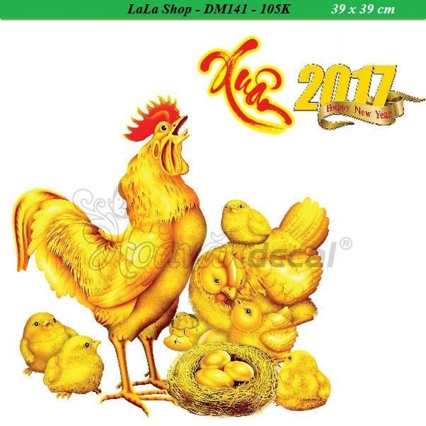 Decal mỹ gà đẻ trứng vàng 'Gà' chữ hán đọc là 'Kê', đồng âm với cát ' (điều tốt, đối với hung). Do đó 'gà' biểu trưng cho điều tốt. Việc dùng hình ảnh gà vào dịp tết, ngoài ý nghĩa cầu mong điều tốt (cát, đại cát) còn mang đến sự vui vẻ hạnh phúc.