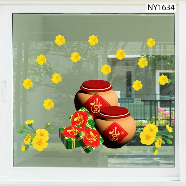 Decal Trang Trí Tết bánh chưng và hũ gạo theo thời gian, dán lên như vẽ. Đặc biệt không gây bẩn tường, lau nước thoải mái.