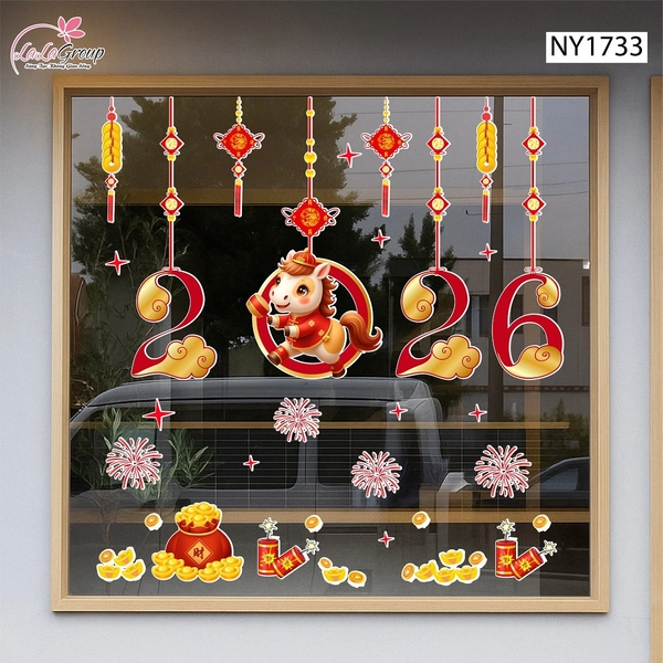 Decal Trang Trí Tết Bính Ngọ Và Pháo Hoa Đỏ 2026 là mẫu decal dán kính Tết nổi bật, mang không khí rực rỡ, may mắn, phú quý tràn đầy. Thiết kế kết hợp hình ảnh pháo hoa đỏ, hoa mai, tiền vàng, biểu trưng cho sự khởi đầu tươi mới và thịnh vượng trong năm Bính Ngọ 2026.