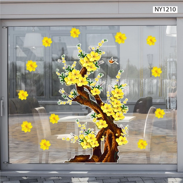 Decal Trang Trí Tết Cây Mai Vàng Phú Quý Mẫu 4 xuất khẩu ,in bằng công nghệ cao, không viền trắng không bay màu theo thời gian, dán lên như vẽ. Đặc biệt không gây bẩn tường, lau nước thoải mái.
