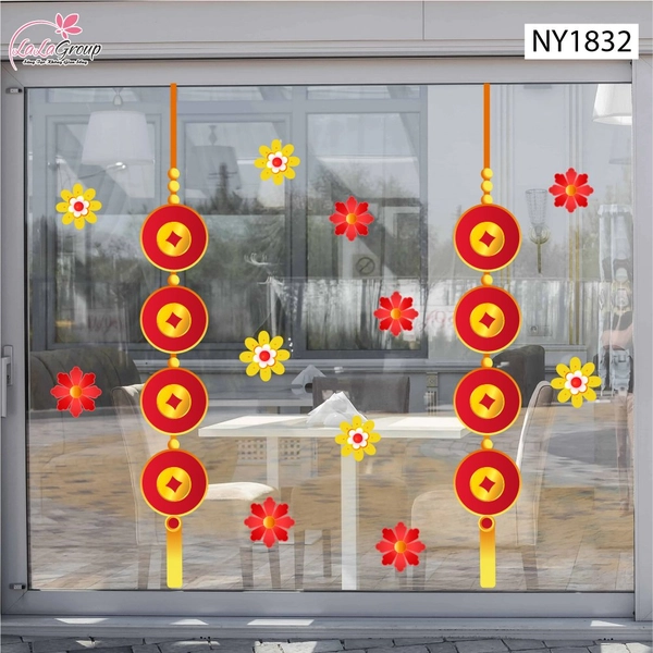 Tông màu đỏ - vàng chủ đạo giúp decal nổi bật, thu hút ánh nhìn và hợp phong thủy. Sản phẩm thích hợp trang trí cửa kính, quầy thu ngân, văn phòng, showroom, quán cà phê hoặc không gian gia đình, tạo điểm nhấn sinh động và ấm áp cho mùa Tết.