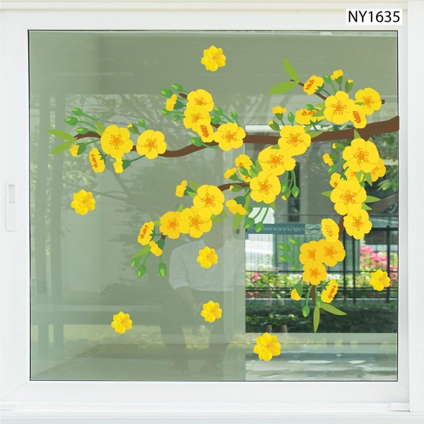 Decal Trang Trí Tết mai vàng đua sắc theo thời gian, dán lên như vẽ. Đặc biệt không gây bẩn tường, lau nước thoải mái.