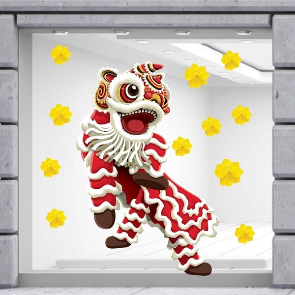 Decal trang trí tết múa lân chúc tết mẫu 2 tạo nên một không gian 'Tết Việt'của bạn trong dịp Tết nguyên đán, để cùng chào đón năm mới trong tâm trạng phấn khởi, và báo hiệu một năm mới đến thật nhiều may mắn...!!!