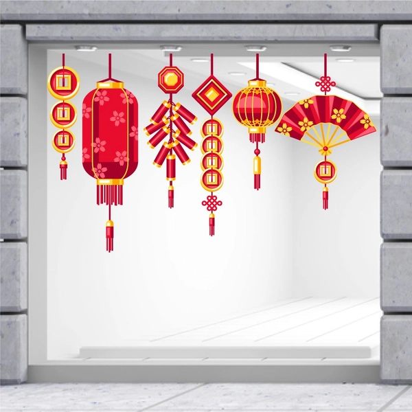 Decal Trang Trí Tết Quý Mão Lồng Đèn Đỏ Và Quạt Như Ý tạo nên một không gian 'Tết Việt' của bạn trong dịp Tết nguyên đán, để cùng chào đón năm mới trong tâm trạng phấn khởi, và báo hiệu một năm mới đến thật nhiều may mắn...!!!