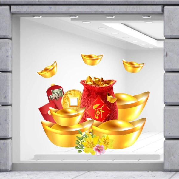 Decal trang trí tết hổ trèo thỏi vàng xuất khẩu ,in bằng công nghệ cao, không viền trắng không bay màu theo thời gian, dán lên như vẽ. Đặc biệt không gây bẩn tường, lau nước thoải mái.
