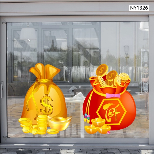 Decal Trang Trí Tết Túi Tiền Vàng May Mắn xuất khẩu ,in bằng công nghệ cao, không viền trắng không bay màu theo thời gian, dán lên như vẽ. Đặc biệt không gây bẩn tường, lau nước thoải mái.