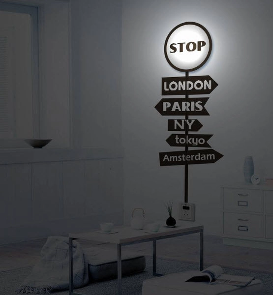Bộ sản phẩm bao gồm: đèn treo tường, decal trang trí, đinh ốc