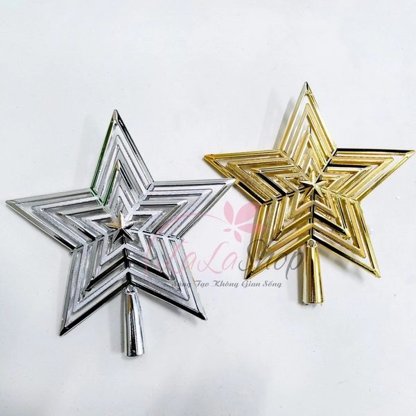Một cây thông Noel sẽ không thể hoàn thiện nếu thiếu đi ngôi sao gắn trên đỉnh. Ngôi sao gắn đỉnh cây thông Noel bằng nhựa cao cấp dày dặn, họa tiết uốn lượn cùng màu ánh kim sang trọng. Cùng nhau bắt tay chuẩn bị một cây thông tươm tất, hoàn chỉnh đón Giáng sinh an lành cùng những người thân yêu nhé.