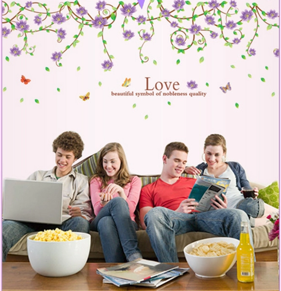 Decal dán tường Giàn hoa tím 2 với họa tiết hoa loa kèn cùng đàn chim đang bay lượn tạo giúp phòng khách nhà bạn trải đầy sắc hoa rực rỡ, tươi mới.