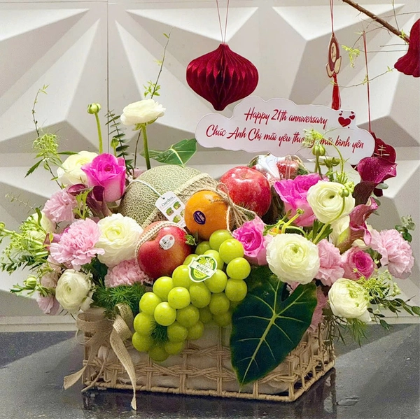 Giỏ Quà Tặng Trái Cây Nhập Khẩu Kèm Hoa Tươi