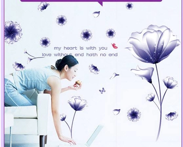 Decal dán tường Hoa hồng ngọc tím với hình ảnh thiên nhiên, hoa cỏ giúp không gian căn nhà bạn thêm phần xinh xắn và đáng yêu.