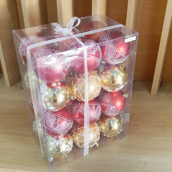 Chính vì thế Hộp 24 châu đỏ họa tiết 2 loại nhám bóng trang trí noel Loại 8cm là một vật trang trí cây thông cũng như một đồ trang trí noel không thể thiếu vào dịp lễ cuối năm này.