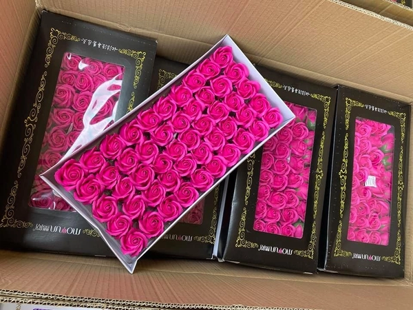 Hộp hoa hồng sáp thơm màu hồng sen 50 bông cao cấp