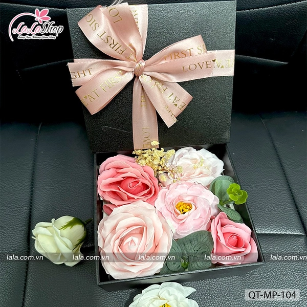 Hộp quà tặng hoa sáp kèm phụ kiện mẫu vuông 104