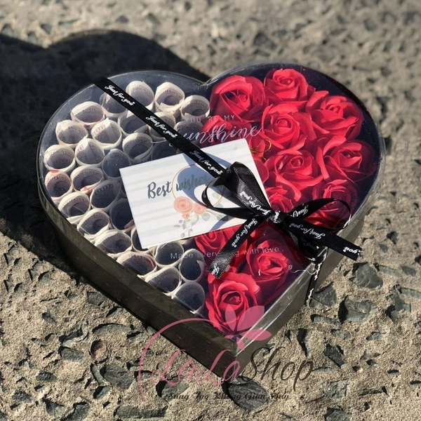 Sản phẩm gồm: 34 tờ tiền 2k mới, 14 hoa hồng sáp