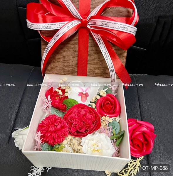 Hộp quà tặng hoa sáp kèm phụ kiện mẫu vuông 088