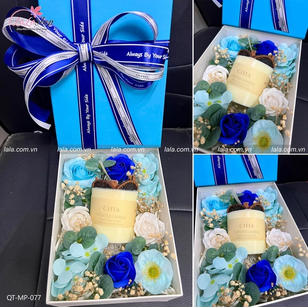Hộp quà tặng nến thơm hoa sáp kèm phụ kiện mẫu chữ nhật 077