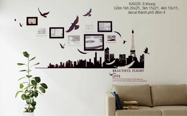 Khung ảnh kèm KA020 - Khung ảnh gỗ treo tường cao cấp kèm decal dán tường