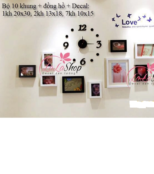 Khung gỗ bộ 10 khung - KG042 với khung hình nhiều màu sắc trên bức tường như thể hiện tình yêu thương, tình cảm với người thân.