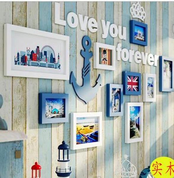 Khung gỗ bộ 10 khung KG130 với khung hình nhiều màu sắc trên bức tường như thể hiện tình yêu thương, tình cảm với người thân.