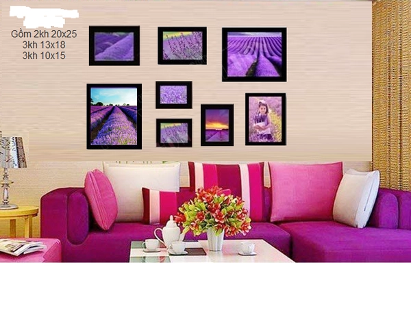 Khung gỗ bộ 8 khung - KG013 với khung hình nhiều màu sắc trên bức tường như thể hiện tình yêu thương, tình cảm với người thân.