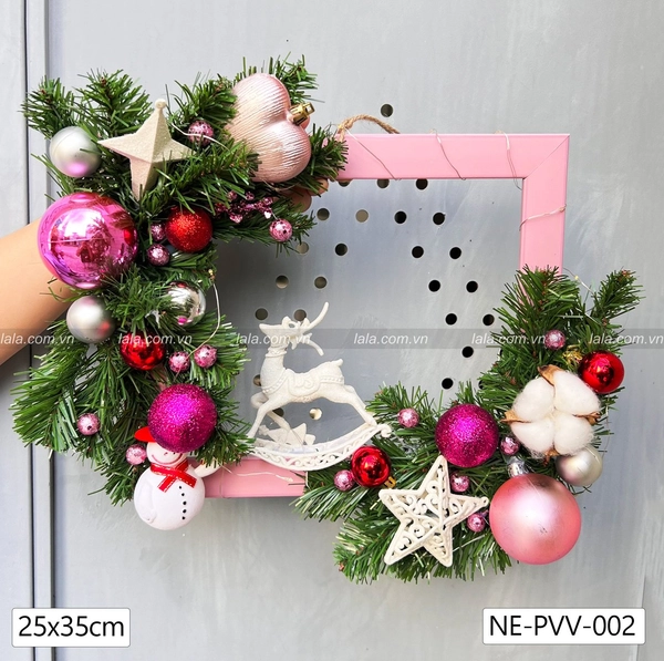 Khung lá thông Full phụ kiện trang trí giáng sinh Tặng kèm đèn LED mẫu 002